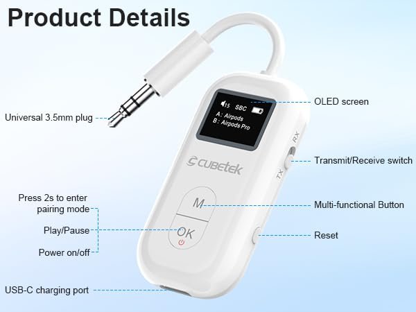 - [WIDE COMPATIBILITY] Works with any device with an AUX output, including in-flight entertainment, gym equipment, gaming consoles, and TVs. Use your AirPods, earbuds, or wireless headphones without the hassle of cords.