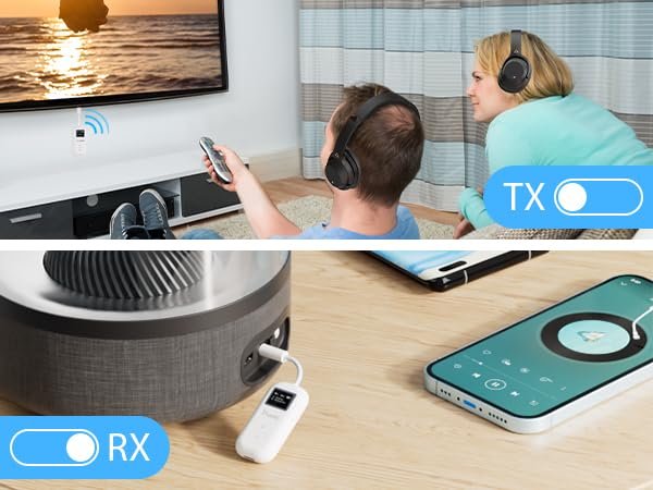 - [RECEIVING MODE] in RX mode, you can pair two Mobiles simultaneously, making it perfect for shared listening with family or friends. Note: Only one mobile will be active and other can be used once you pause the active one.