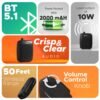 - Type-C Charging & Extra Mic Port: Features a modern Type-C charging port for faster recharging and an additional mic input for dual-microphone use, enhancing versatility.