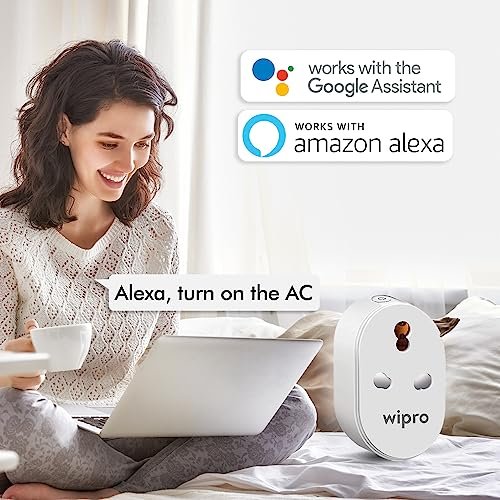 Wipro 16A Wi-Fi Smart Plug with Energy Monitoring- Suitable for Large Appliances like Geysers, Microwave Ovens, Air Conditioners (Works with Alexa and Google Assistant)- White