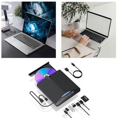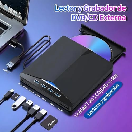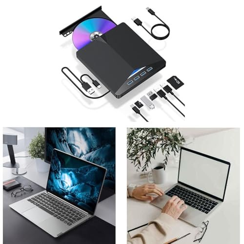 - 7 IN 1 Optical Drive‘: Our portable DVD player is not only a CD/DVD reader, but also a CD/DVD burner/burner, 4 port USB 3.0 hub, SD card reader, TF card reader (SD card and TF card are not used at the same time)
